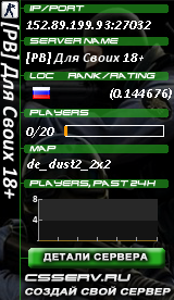 152.89.199.93:27032 [PB] Для Своих 18+ de_dust2_2x2