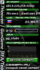 185.9.145.159:34161 | 7Heaven | GunGame [FFA/Teamplay] | gg_night |