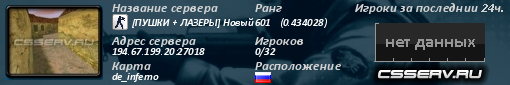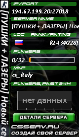 IP адрес: 194.67.199.20:27018 Данные по серверу были обнавлены 02.04.2026 19:30 Название сервера: [ПУШКИ + ЛАЗЕРЫ] Новый сервер Текущая карта: de_dust2_2x2 На сервере сейчас играют: 0 / 32 игроков Ранг: 601 (-601) (0.43 онлайн+голоса) CЕРВЕР В СПИСКЕ на 6 странице |
