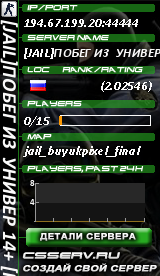 Название сервера: [JAIL]ПОБЕГ ИЗ УНИВЕР 14+ [FREE HOOK + VIP]