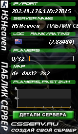 202.49.176.110:27015 | HSHeaven ПАБЛИК СЕРВЕР | de_dust2_2x2 |