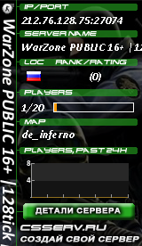 212.76.128.75:27074 WarZone PUBLIC 16+ |128tick [!ws] [!knife] de_inferno