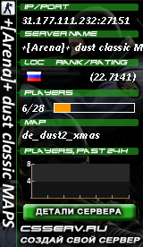 Мониторинг серверов собирает статистику с большого количества серверов, поэтому для поиска нужного Вам сервера воспользуйтесь специальной формой, где Вы можете задать необходимые параметра сервера, такие как: карта, количество игроков, название сервер и другие. Также у нас есть быстрый поиск по айпи адресу сервера, данный поиск нужен, если Вы хотите посмотреть статистику сервера.
