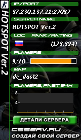 IP адрес: 37.230.137.21:27037 Данные по серверу были обнавлены 22.10.2025 22:20 Название сервера: HOTSPOT Ver.2 Текущая карта: de_mirage На сервере сейчас играют: 9 / 10 игроков Ранг: 461 (+31) (1121.17 онлайн+голоса) ![]() CЕРВЕР В СПИСКЕ на 4 странице |