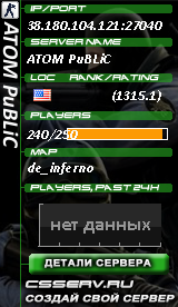 IP адрес: 38.180.104.121:27040 Данные по серверу были обнавлены 03.10.2025 03:40 Название сервера: Galaxy Network Cs 1.6 Текущая карта: de_dust2 На сервере сейчас играют: 240 / 250 игроков Ранг: 293 (+64) (1315.10 онлайн+голоса) ![]() CЕРВЕР В СПИСКЕ на 4 странице |