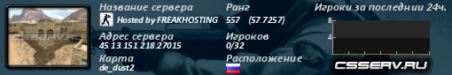 Мониторинг серверов собирает статистику с большого количества серверов, поэтому для поиска нужного Вам сервера воспользуйтесь специальной формой, где Вы можете задать необходимые параметра сервера, такие как: карта, количество игроков, название сервер и другие. Также у нас есть быстрый поиск по айпи адресу сервера, данный поиск нужен, если Вы хотите посмотреть статистику сервера.