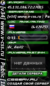 45.131.186.72:27015 | [v34] www.v-css.ru | Public [18+] | de_dust2 |