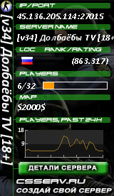 45.136.205.114:27015 | [v34] Долбаёбы TV [18+] | de_mirage_csgo_v2 |