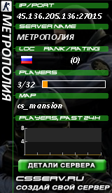 Мониторинг серверов собирает статистику с большого количества серверов, поэтому для поиска нужного Вам сервера воспользуйтесь специальной формой, где Вы можете задать необходимые параметра сервера, такие как: карта, количество игроков, название сервер и другие. Также у нас есть быстрый поиск по айпи адресу сервера, данный поиск нужен, если Вы хотите посмотреть статистику сервера.