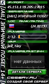 Название сервера: [JAIL] ЭПИЧНЫЙ ПОБЕГ 14+ [FREE VIP+HOOK]