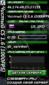46.174.48.15:27219 | Чистый CS 1.6 (1000FPS) | de_dust2 |