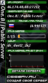 46.174.48.48:27212 | One.B||Public Server | de_dust2_2x2 |