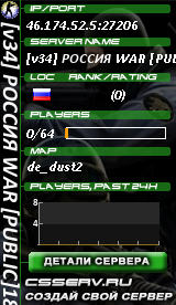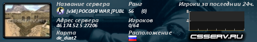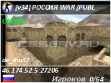 46.174.52.5:27206 | [v34] РОССИЯ WAR [PUBLIC]18+|ADMIN|БЕСПЛАТНО| | de_dust2 |