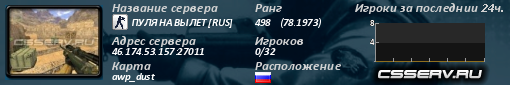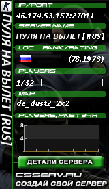 46.174.53.157:27011 | ПУЛЯ НА ВЫЛЕТ [RUS] | de_dust2 |
