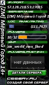 57.128.210.53:27015 | [ZM] Мёртвый Город 14+ | zm_zombust |