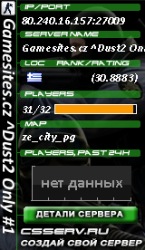 Мониторинг серверов собирает статистику с большого количества серверов, поэтому для поиска нужного Вам сервера воспользуйтесь специальной формой, где Вы можете задать необходимые параметра сервера, такие как: карта, количество игроков, название сервер и другие. Также у нас есть быстрый поиск по айпи адресу сервера, данный поиск нужен, если Вы хотите посмотреть статистику сервера.