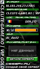 Название сервера: CS.ELITE-GAME.RO | VIP GOLD FREE TS ON [TS.ELITE-GAME.RO] ::..