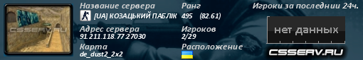 91.211.118.77:27030 | [UA] КОЗАЦЬКИЙ ПАБЛІК [18+] | de_dust2_2x2 |