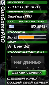 Мониторинг серверов собирает статистику с большого количества серверов, поэтому для поиска нужного Вам сервера воспользуйтесь специальной формой, где Вы можете задать необходимые параметра сервера, такие как: карта, количество игроков, название сервер и другие. Также у нас есть быстрый поиск по айпи адресу сервера, данный поиск нужен, если Вы хотите посмотреть статистику сервера.