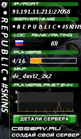 Название сервера: • R E P U B L I C • #SKINS