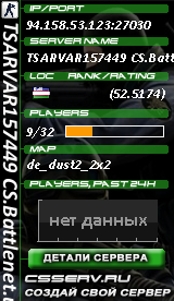 94.158.53.123:27030 | TSARVAR157449 CS.Battlenet.uz | PUBLIC [FREE VIP | 1000FPS] | de_nuke |