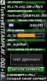 Мониторинг серверов собирает статистику с большого количества серверов, поэтому для поиска нужного Вам сервера воспользуйтесь специальной формой, где Вы можете задать необходимые параметра сервера, такие как: карта, количество игроков, название сервер и другие. Также у нас есть быстрый поиск по айпи адресу сервера, данный поиск нужен, если Вы хотите посмотреть статистику сервера.