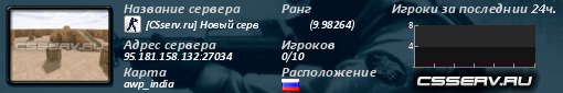 |  |  | 95.181.158.132:27034 | [CSserv.ru] Новый сервер | de_dust2_2x2 |