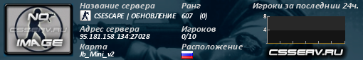 IP адрес: 95.181.158.134:27028 Данные по серверу были обнавлены 03.10.2025 10:50 Название сервера: CSESCAPE | ОБНОВЛЕНИЕ 2.0 (БЕТА-ТЕСТ) Текущая карта: Jb_Mini_v2 На сервере сейчас играют: 0 / 10 игроков Ранг: 607 (-2) (1002.00 онлайн+голоса) ![]() CЕРВЕР В СПИСКЕ на 4 странице |