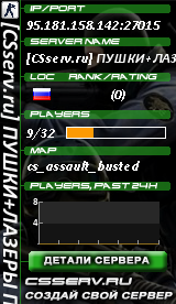 Название сервера: [CSserv.ru] ПУШКИ+ЛАЗЕРЫ ПОГНАЛИ