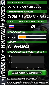 95.181.158.148:8888 | CSDM •[ПУШКИ + ЛАЗЕРЫ]• ПЬЯНАЯ ПАНДА | cs_pf_dust |