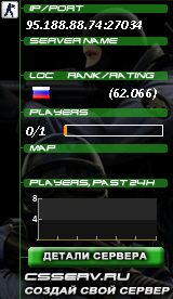Мониторинг серверов собирает статистику с большого количества серверов, поэтому для поиска нужного Вам сервера воспользуйтесь специальной формой, где Вы можете задать необходимые параметра сервера, такие как: карта, количество игроков, название сервер и другие. Также у нас есть быстрый поиск по айпи адресу сервера, данный поиск нужен, если Вы хотите посмотреть статистику сервера.